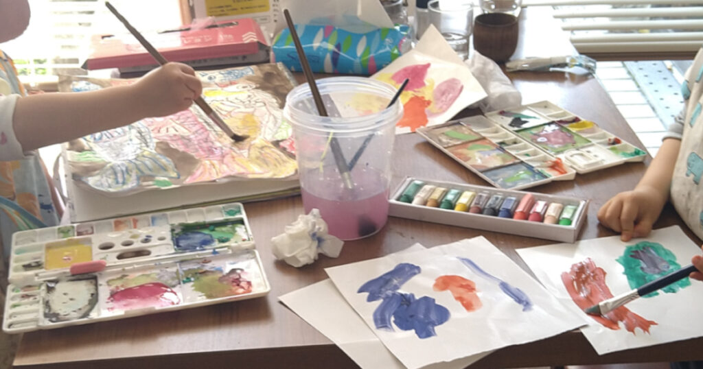 時間をかけて繰り返し絵の具や筆を使ってみよう。